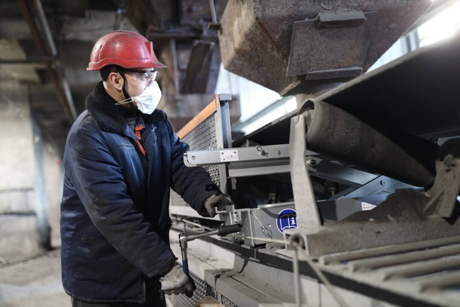 Як розповів механік дільниці фільтрації та конвеєрів РЗФ-1 Юрій Коливашко, заміна ролика для досвідченого ремонтника, як то кажуть, справа техніки. Але перед тим треба підняти й зафіксувати конвеєрну стрічку, яка хоч і гумова, але доволі товста й довга, а тому важка.