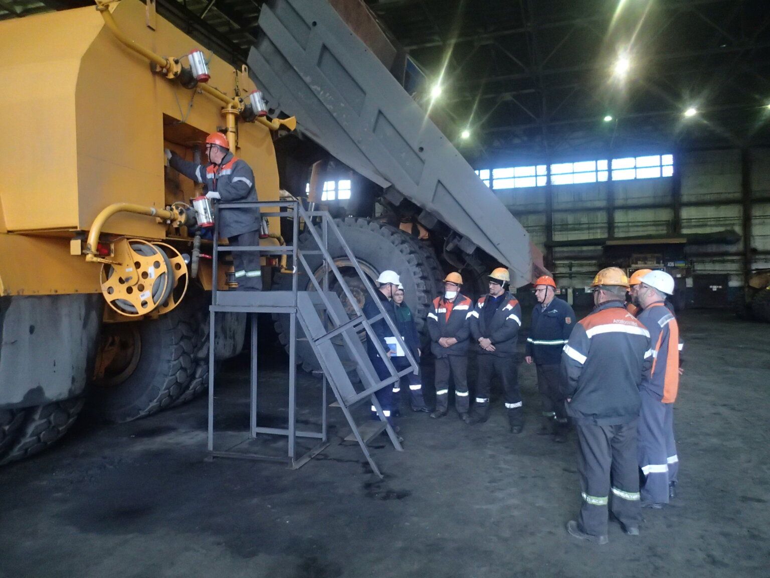 В гірничотранспортному цеху гірничого департаменту ремонт великовантажних автомобілів, який треба здійснювати на висоті, тепер буде проводитись за допомогою надійних та безпечних пересувних майданчиків.